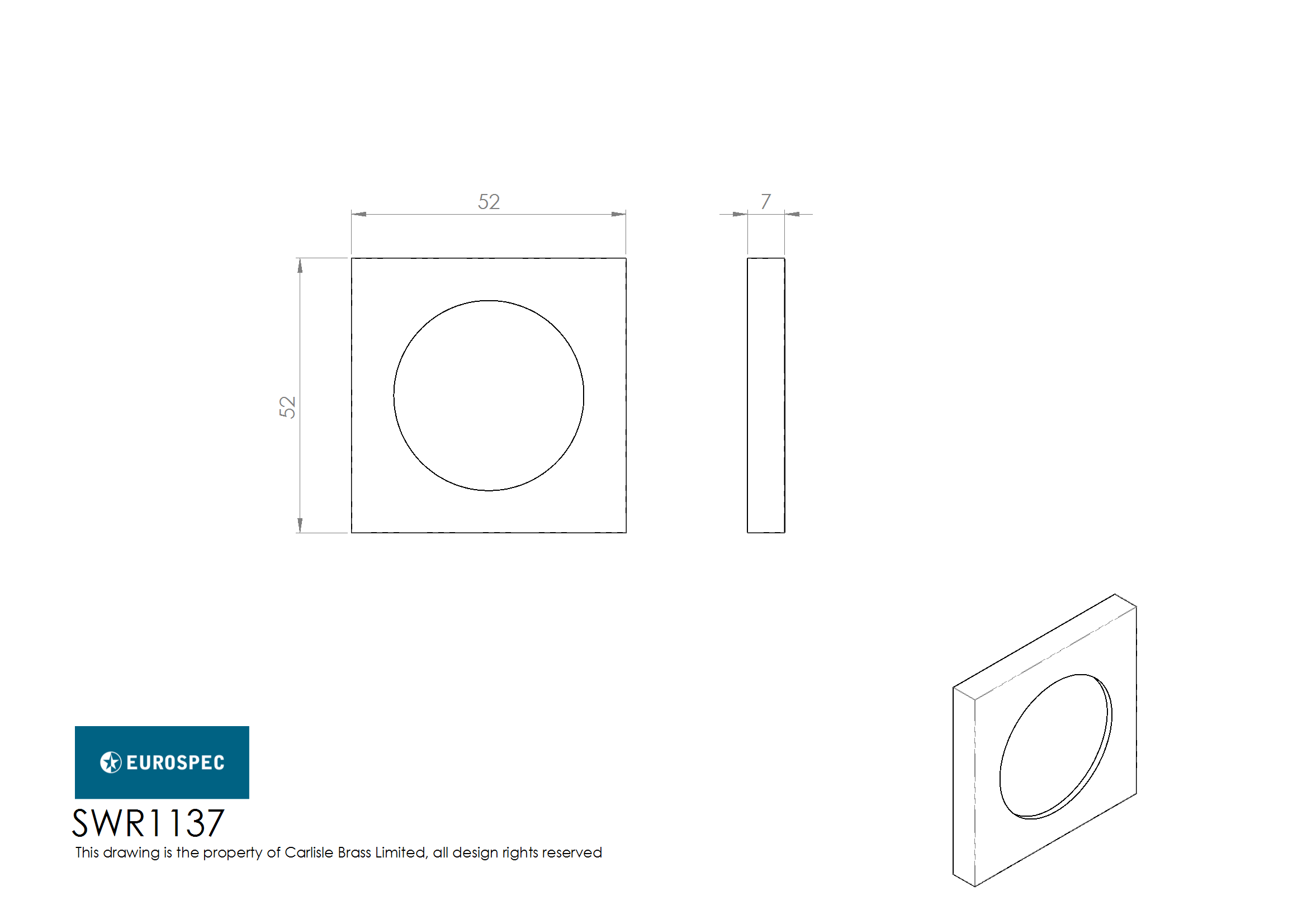 Square Rose for SWL Levers. 52mm Dia with 7mm Rose Thickness