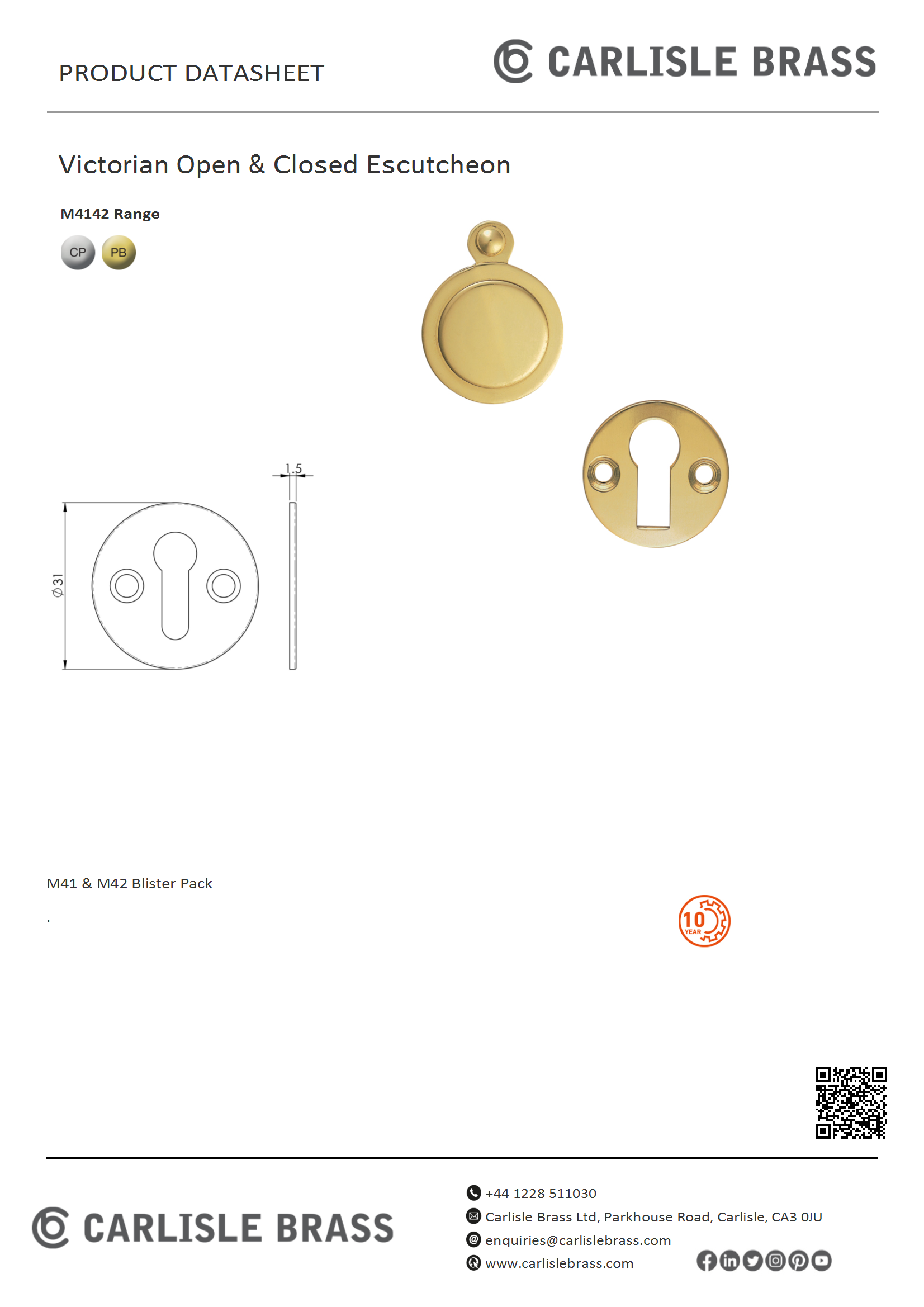 Specifications of the unit including the dimensions of the unit and the parts you will receive. This drawing is the property of Carlisle Brass Limited, all design rights reserved.